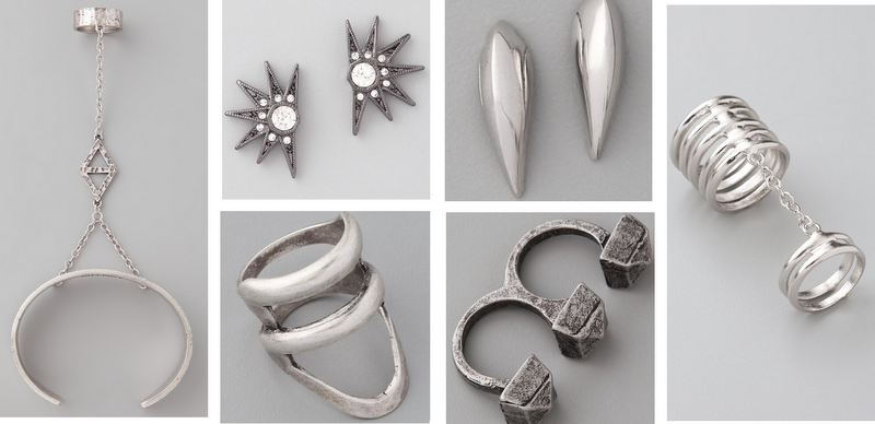handbracelet from Low Luv x Erin Wasson, star earrings from House of Harlow 1960, claw earrings from Made Her Think, connected rings from Bop Bijoux, stacked ring from Made Her Think, three studs knuckle ring from Adia Kibur. All found at www.shopbop.com