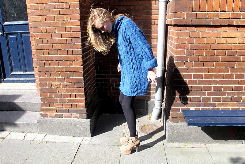 This outfit is about 1½weeks old. I liked it a lot! The big blue sweater was great as a dress and having my Lita boots making my legs much longer, it doesn’t matter that the sweater has no shape at all. An outfit of a sweater and tights is the best outfit, I think, for these colder days! How will you try to look cool this winter and still keep warm?