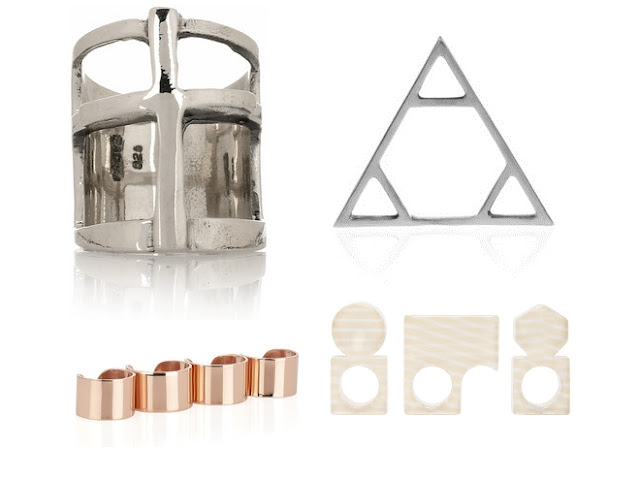 Wish I had tons of money, so I could spend them all on decorating my fingers with these beauties! But why do all the pretty things have to be so expensive? The prices range from about 70 euro for the geometric rings up to 345 euro for the four-finger ring. Damn!