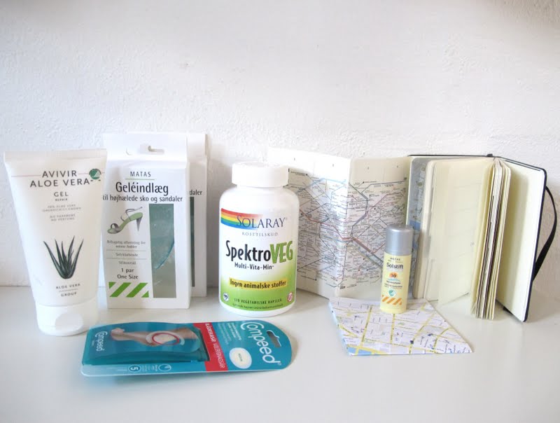 Så har jeg fået samlet alle de ting, jeg synes er nødvendige for at min tur til Paris bliver en succes! Først og fremmest indlæg til stiletter, eftersom jeg gerne vil vade rundt i høje hæle dernede og helst uden at blive nød til at smide skoene halvvejs gennem dagen grundet smerter. Derudover har jeg også hæl-plaster til mine suri sko, da de godt kan gnave sig ind i hælen efter en lang dag. Så er der aloe vera gel, vegetar vitaminer og faktor 30-stick, til at holde min krop og hud sund, ernæret og beskyttet. Sidst men ikke mindst er der min egen guide til byen og min rejsedagbog fra Moleskin, som jeg tror bliver rigtig nyttig. Bogen har både metrokort, kort over byen, tegne- og skrivesider og små sider til at rive ud hvis man har en note til nogen – super smart bog! jeg købte den i den bogbutik i Aarhus, der ligger overfor støj munkholm og ei’kon.