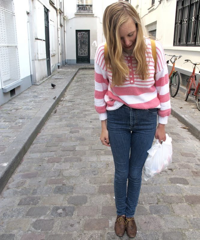 Paris dag 2: dagens KNIT SWEATER: MY GRANDMA’S, BAG: FJÄLLRÄVEN, JEANS: WONHUNDRED, RAVENRING: WEEKDAY, SHOES: RIVER ISLAND.