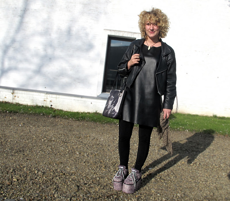 Imens jeg har været i studiepraktik på TEKO har jeg lagt mækre til Stine, som er på billedet og også selv er studiepraktikant. Mest af en ret indlysende grund: MonnSpoonSaloon x Buffalo-skoene – gosh, de er bare noget for sig selv! Stine har brugt sommerferien på at tjene penge til at spare op til disse skønheder – true dedication, siger jeg bare. Derudover er jeg ret imponeret af hendes lækre læderkjole som er hjemmesyet og ret flot lavet. Generelt synes jeg Stine kører en ret fn stil, derudover synes jeg det er dejligt at man kan se på hende at hun er kreativ og interesseret i mode.