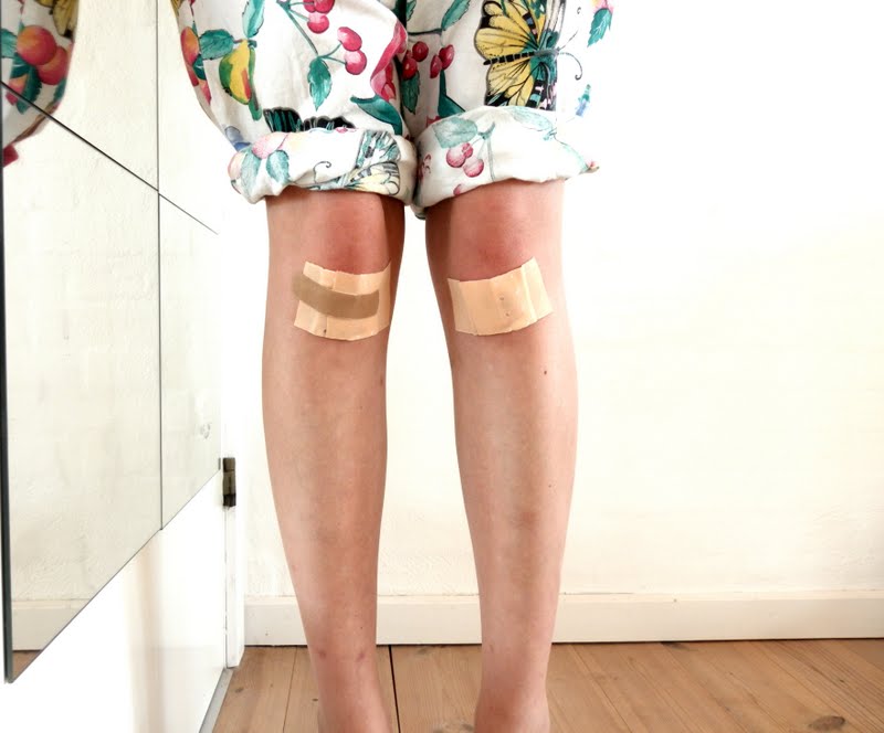 Today was my lucky day. On my way to school I had a little interference with the sidewalk after tripping on a stone. It was the most embarrasing and dumb situation: I was walking down the school street surrounded by students that I believe to be 1st and 2nd year students. There I was, the only 3rd year student, feeling cool, old and smart compared to everyone else and BOOM! I’m lying on the sidewalk. I got up very fast, pretendig that it didn’t hurt at all. When I came into class, I discovered big bloody abrasions on my knees. The thing I’m most sorry about, actually, is that my Exclusive Suri shoes, which I love so dearly, have gotten scratches on the toes. Knees heal, but shoes don’t! 🙁 I hope a bit of black polish can hide the worst scratches.